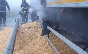Constanţa: Incendiu la remorca unui TIR încărcat cu porumb, pe A2