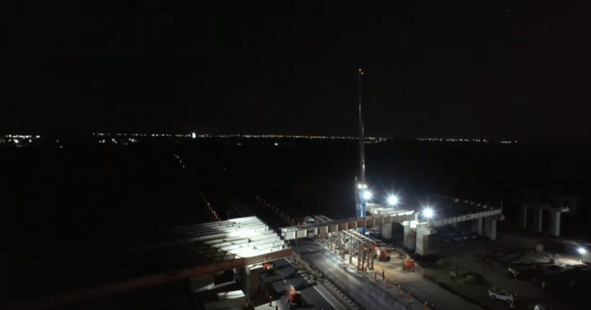 „Primele grinzi ale secțiunii centrale a pasajului principal al A0 Sud peste A2 au fost montate în această noapte! Pentru punerea pe poziție a grinzilor s-a folosit o macara de 250 de tone. Secțiunea este formată din 6 perechi de grinzi metalice cu o lungime de 36 de metri și o greutate de aproximativ 40 de tone. Grinzile sunt confecționate în România de o companie românească”, a anunțat ministrul, pe pagina personală de Facebook.
